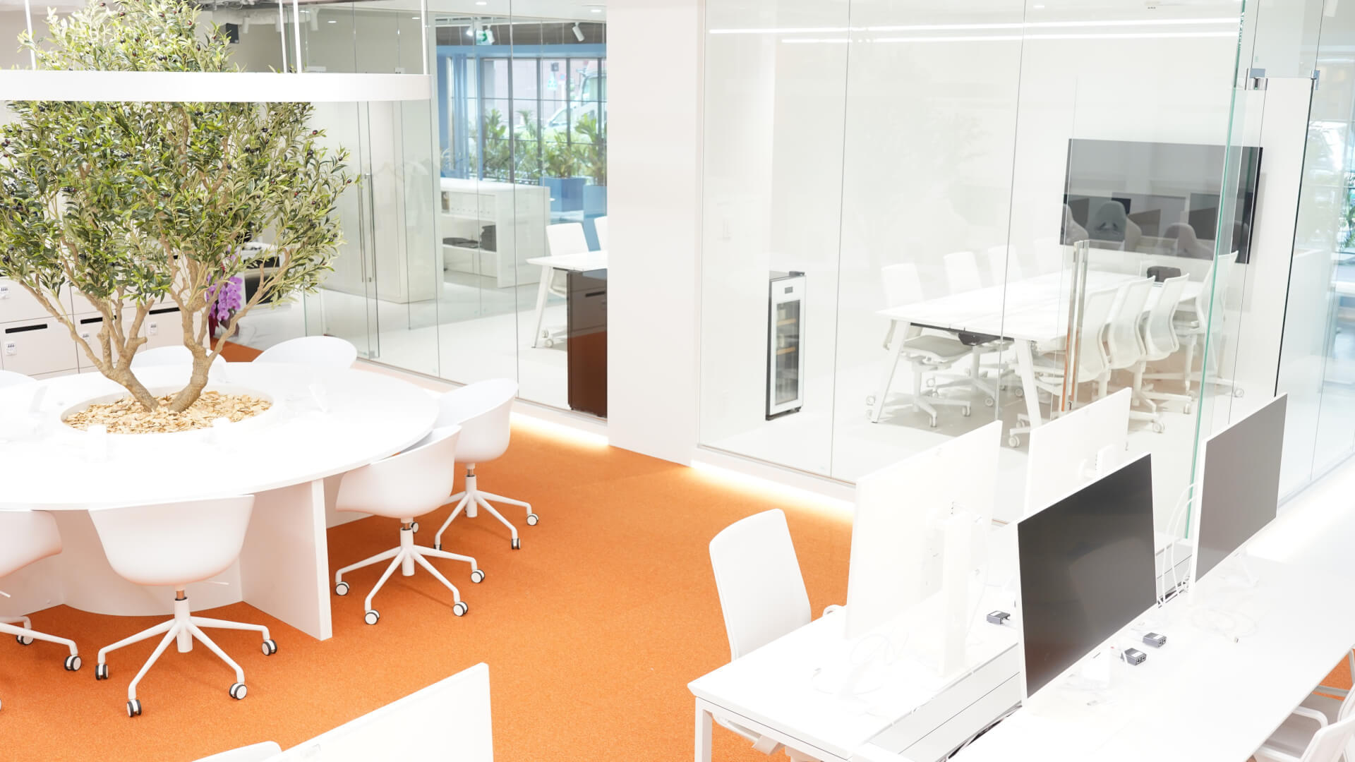 新オフィスは各エリアを色ごとが分かれており、 オレンジの「エナジーオフィスエリア」とブルーの「リラクゼーションオフィ...