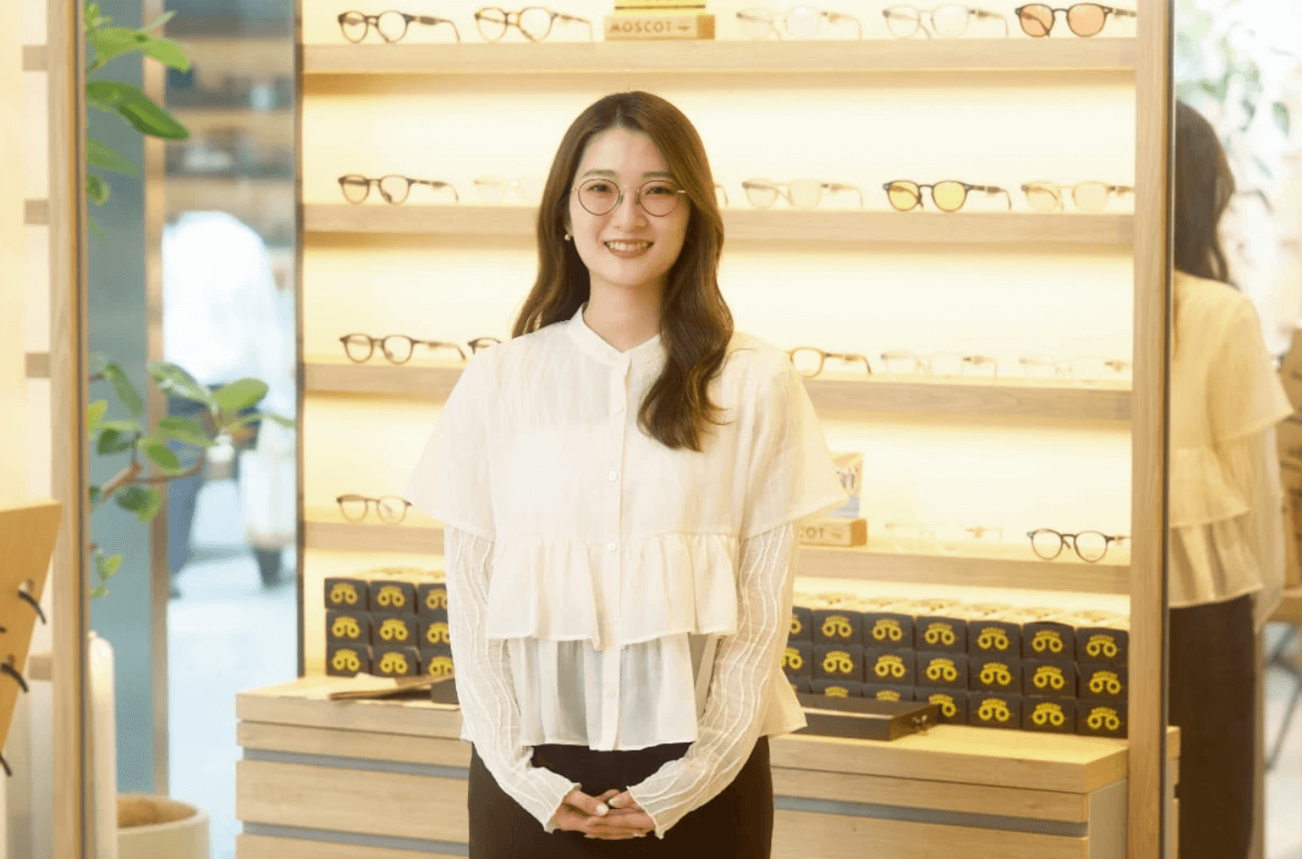 7年目となった現在でも、学びをやめないチャレンジ精神と、楽しく働く明るい姿がありました。年月を経て、今度は彼女自身が、就活生から見て、魅力的に映る存在となっているようです。新卒 独立 ファッション アパレル 社員インタビュー メガネ 販売 SNS マネージャー アイウェア サングラス 洋服 中途 接客 ブランド