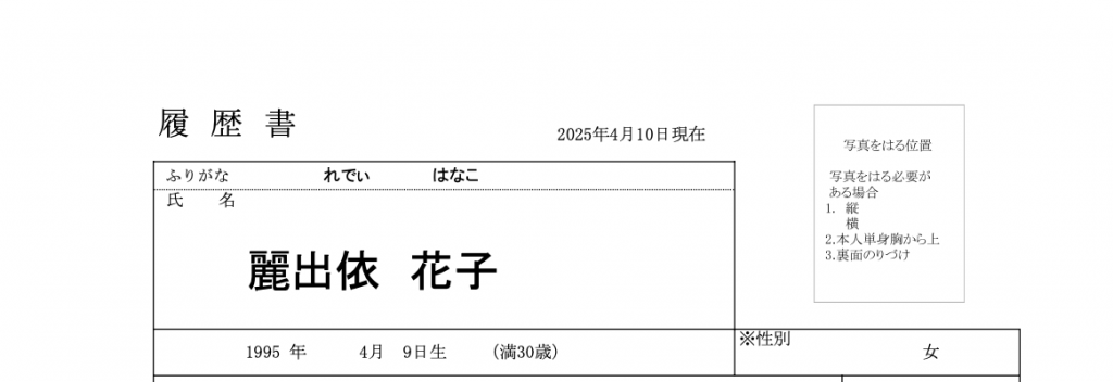 □和暦と西暦の表記は基本的にはどちらでも可能です。ですが、西暦の方が担当者が読む際に分かりやすいため、西暦での記載をおすすめします