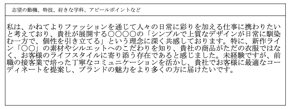 >>下記の記事では、アパレル業界の志望動機の書き方を詳しく解説しています。