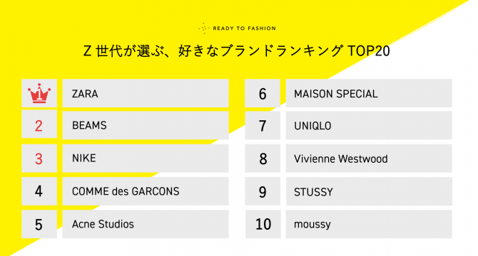 Z世代が選ぶ、好きなブランドランキングTOP20