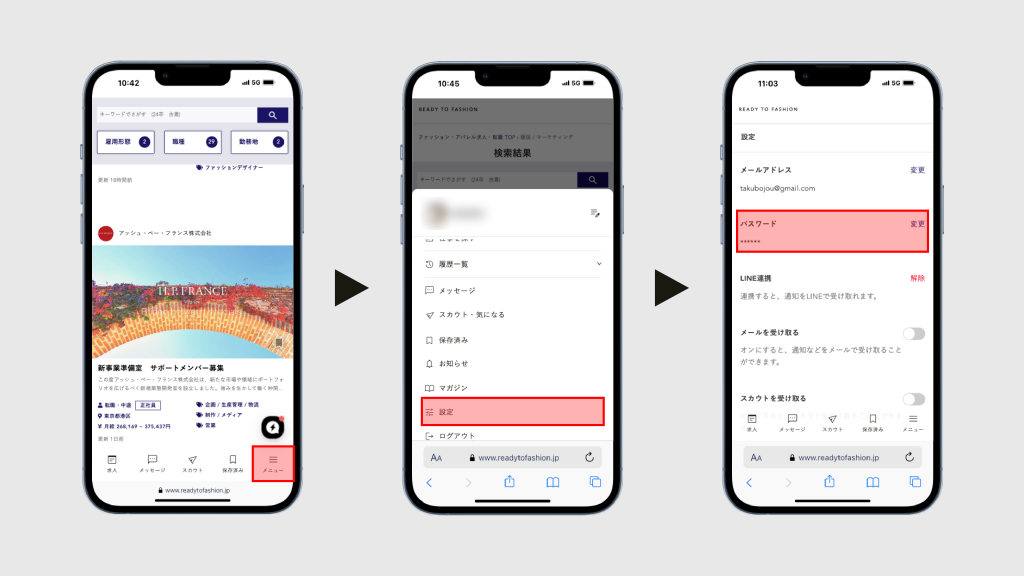「設定」よりパスワードを再設定することができます。