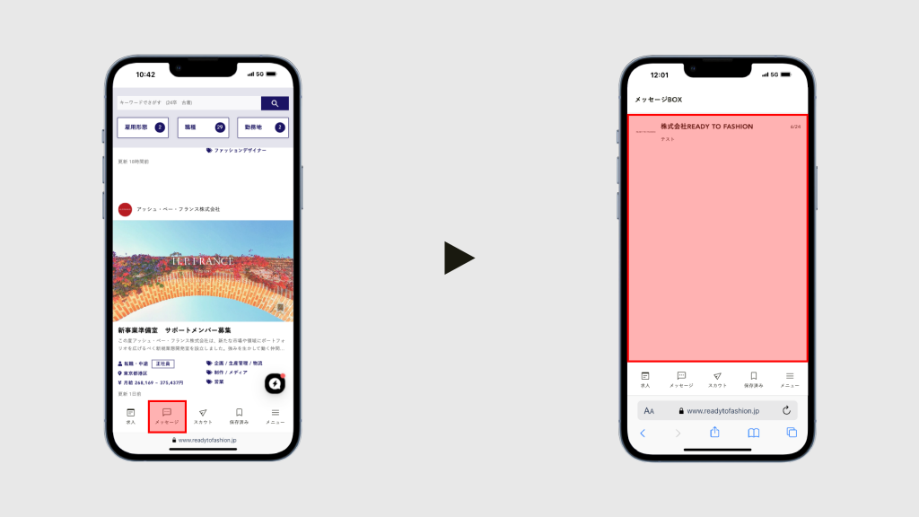 メッセージマークをタップするとメッセージBOXの一覧ページに遷移します。