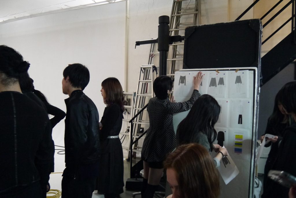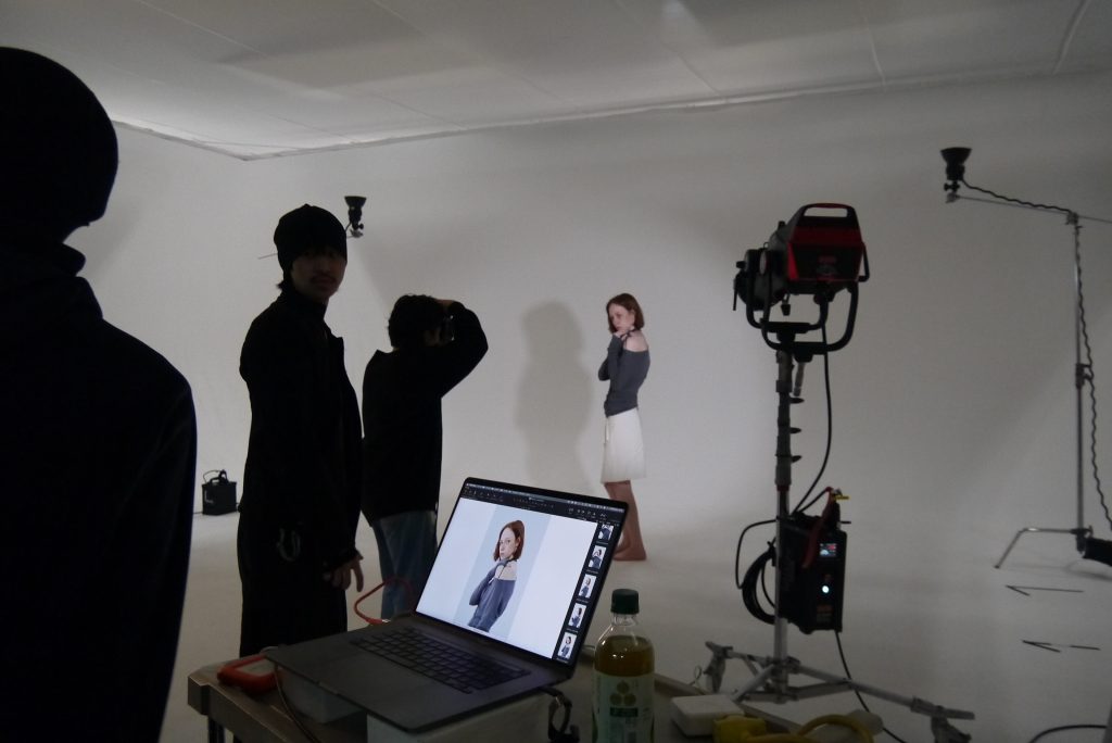 その後、OEM企業のパタンナーへデザインを展開し、年明けにサンプルが届きます。そこから修正を重ねながら完成度を高めていきます。同時並行でスチールとムービーの制作も進め、2月末に撮影を実施。最終的に、3月に開催する展示会に向けて会場構成や演出、SNSでの発信方法などを決定する流れで進めています。