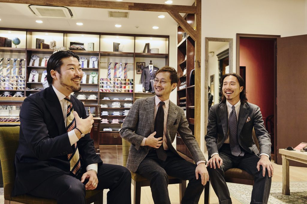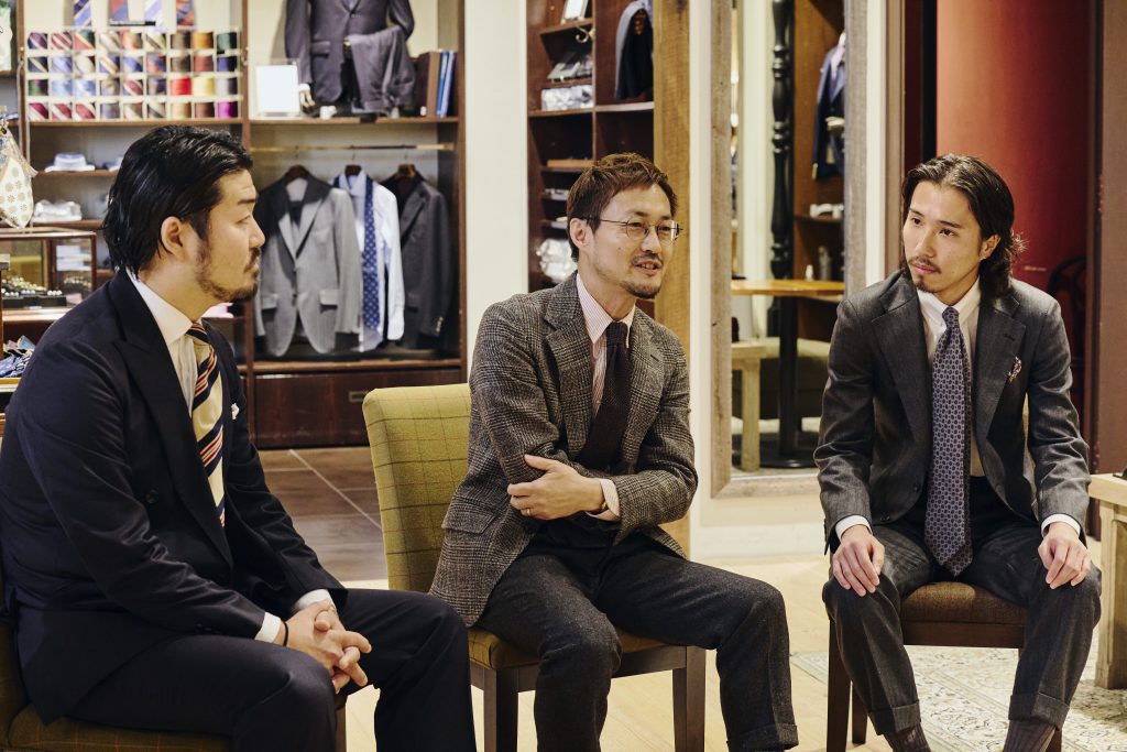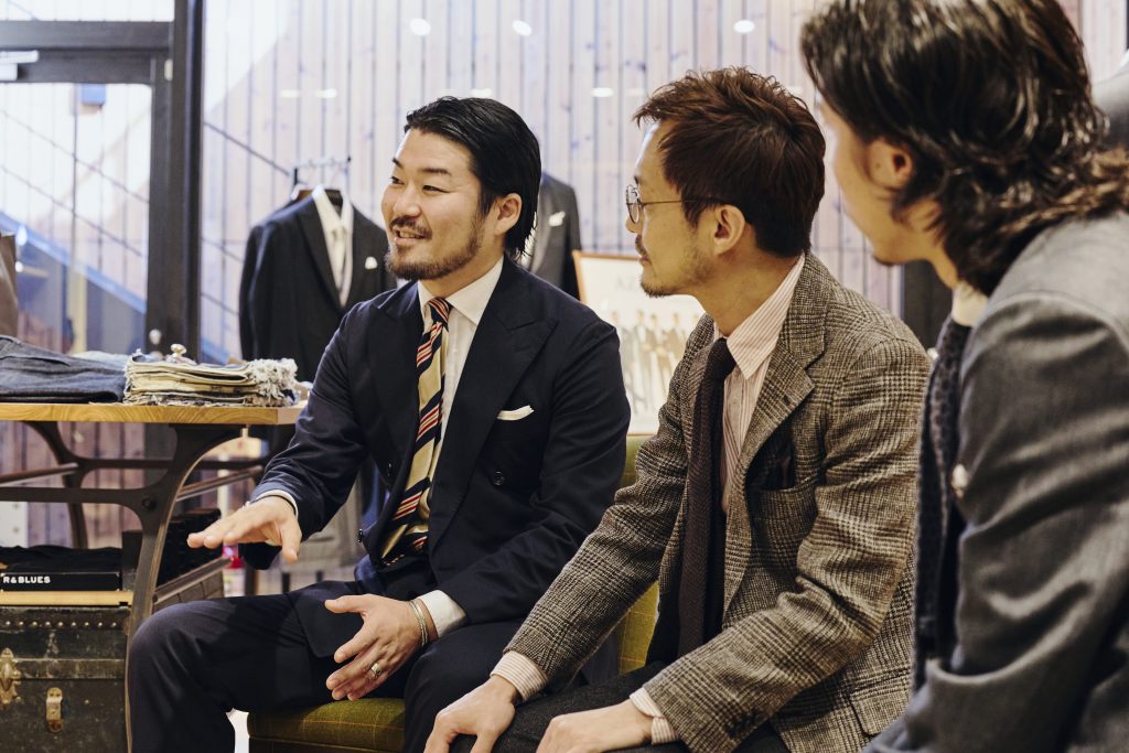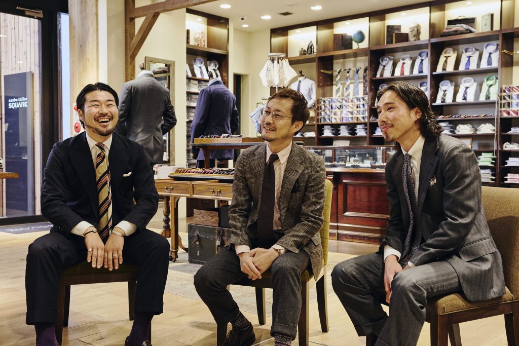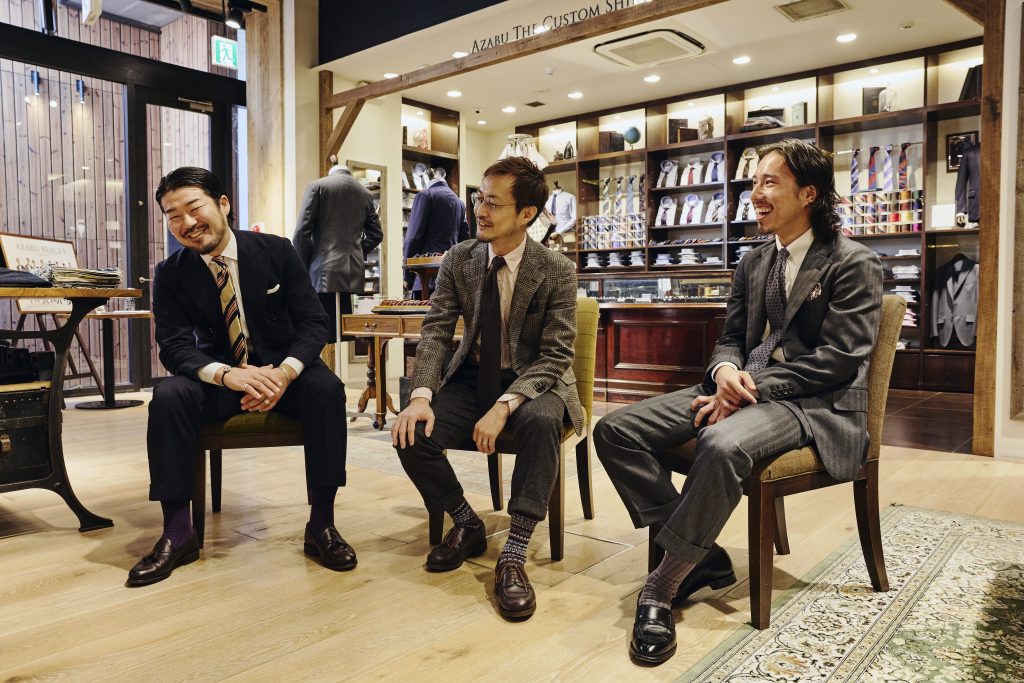 今回お話を伺ったのは、紳士服業界に長年携わり、オーダーメイドの豊富な知識と経験をあわせ持つマスターテーラーの中島啓介さん、東京地区の5店舗を統括するエリアマネージャーの河野淳紀さん、テーラリングスタッフの吉村基毅さん。それぞれが考える麻布テーラーらしさとは何なのか、またそれをどのように社内に残していくのかについて語ってもらいました。