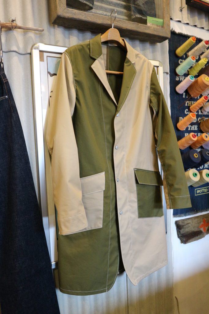 大園:「コートだけどカジュアルに」「複雑なデザインだけど、落ち着いている雰囲気」。きっかけは自転車の買い替えです。今、乗っている自転車はフルオーダーで、テーマは「最強ママチャリ」です。ちょっと出かけるとき、ちょうど良いデザインと機能性の両立を目指しました。スポーツウェアでもなく、ツイードランのように張り切った服装でもなく、あくまで目指すのは”等身大”のデイリーウェア。和洋折衷どこのジャンルにも属さない物、それが「クルージングシリーズ」です。このコートは、ベンタイル生地を使用することで、防水性に優れているので、日用的にも便利です。