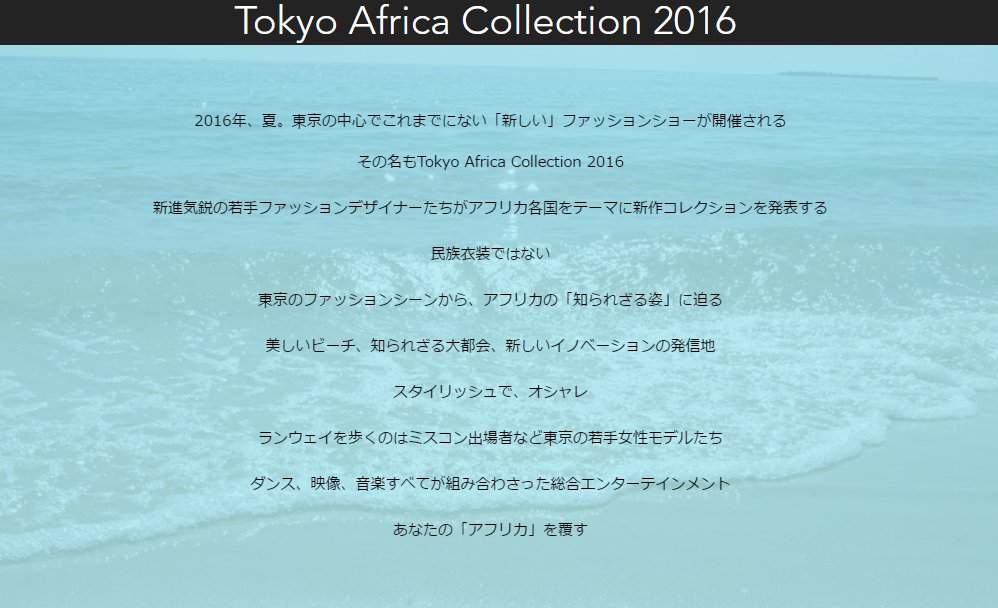 タイトル:「TOKYO AFRICA COLLETION 2016」