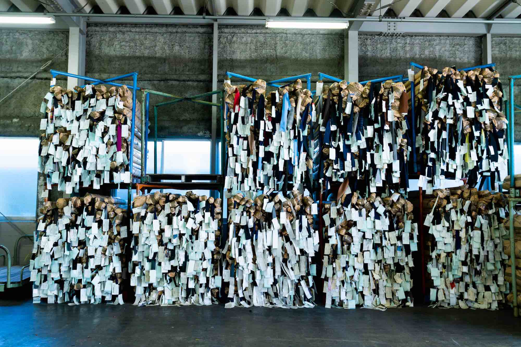 三甲テキスタイルには、生地を仕入れる工場、生地を買い取るメーカー、互いのニーズを仕入れ前に把握しあえないアパレル業界の旧態依然とした体制などが原因となり、商品化されずに行き場をなくした高品質の生地が数多く眠っている。