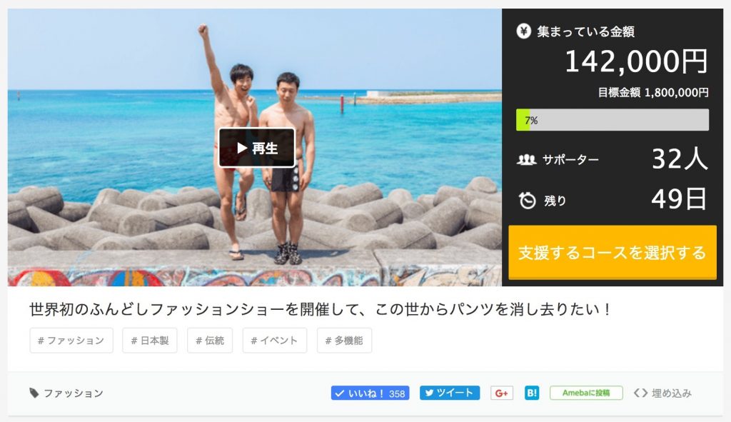 ■ Makuakeクラウドファンディングサイト:「世界初のふんどしファッションショーを開催して、 この世からパンツを消し去りたい!」