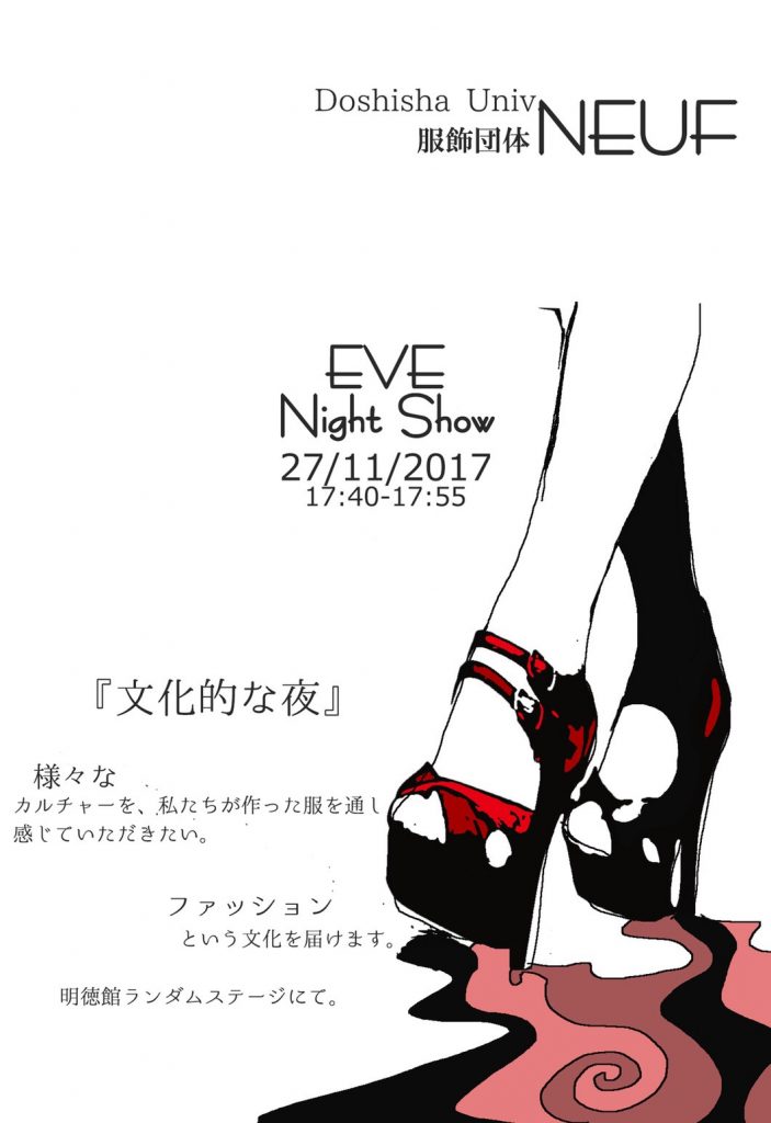 2017年11月26日(日)に同志社大学の服飾団体「neuf」が、同大学の学園祭「EVE祭」にてファッションショーを開催する。