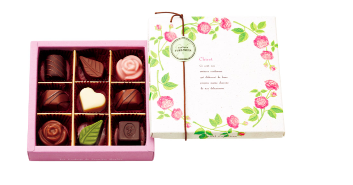 4種類のショコラと10種類のメッセージ&イラストから組み合わせを楽しめます。