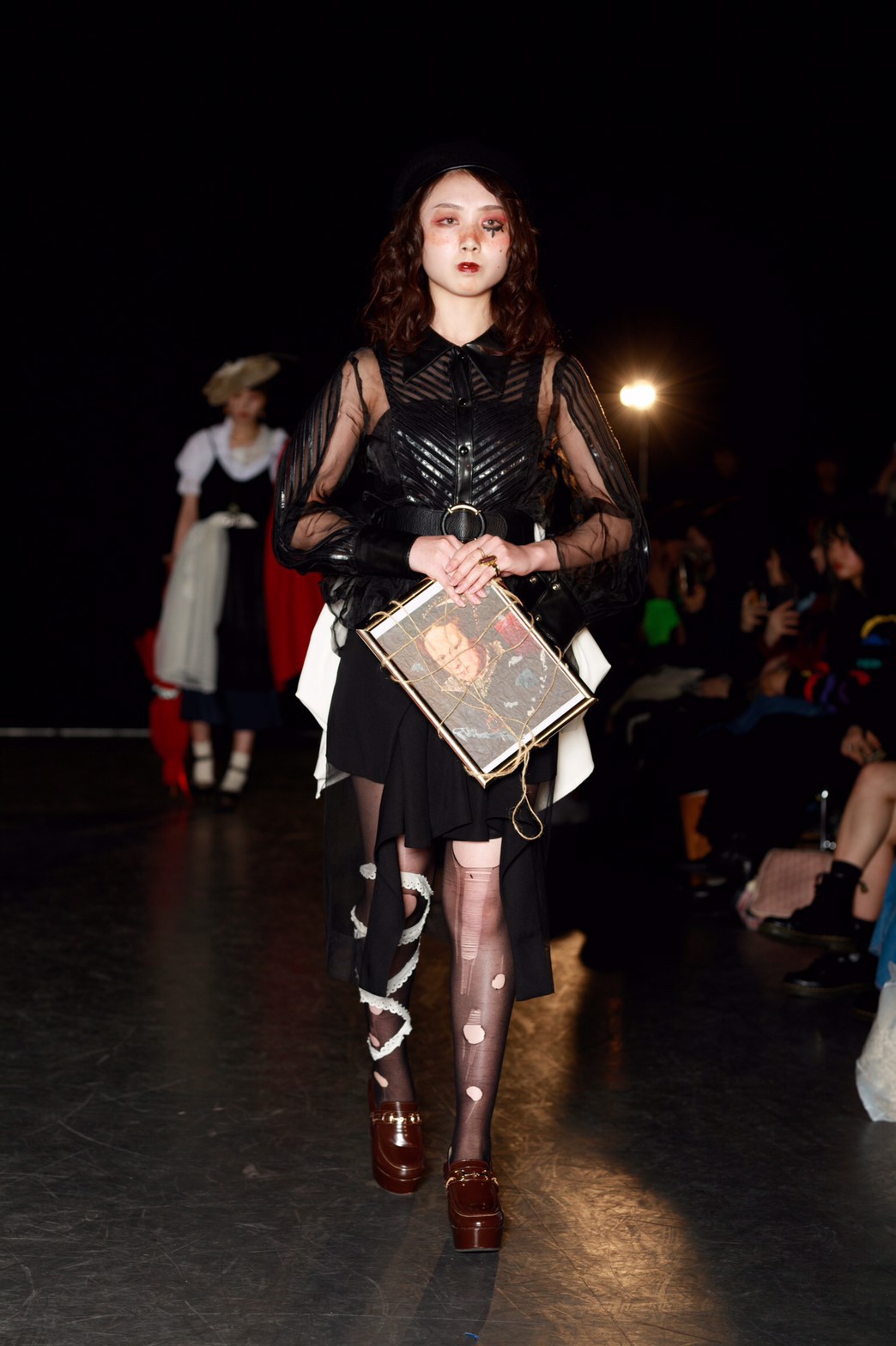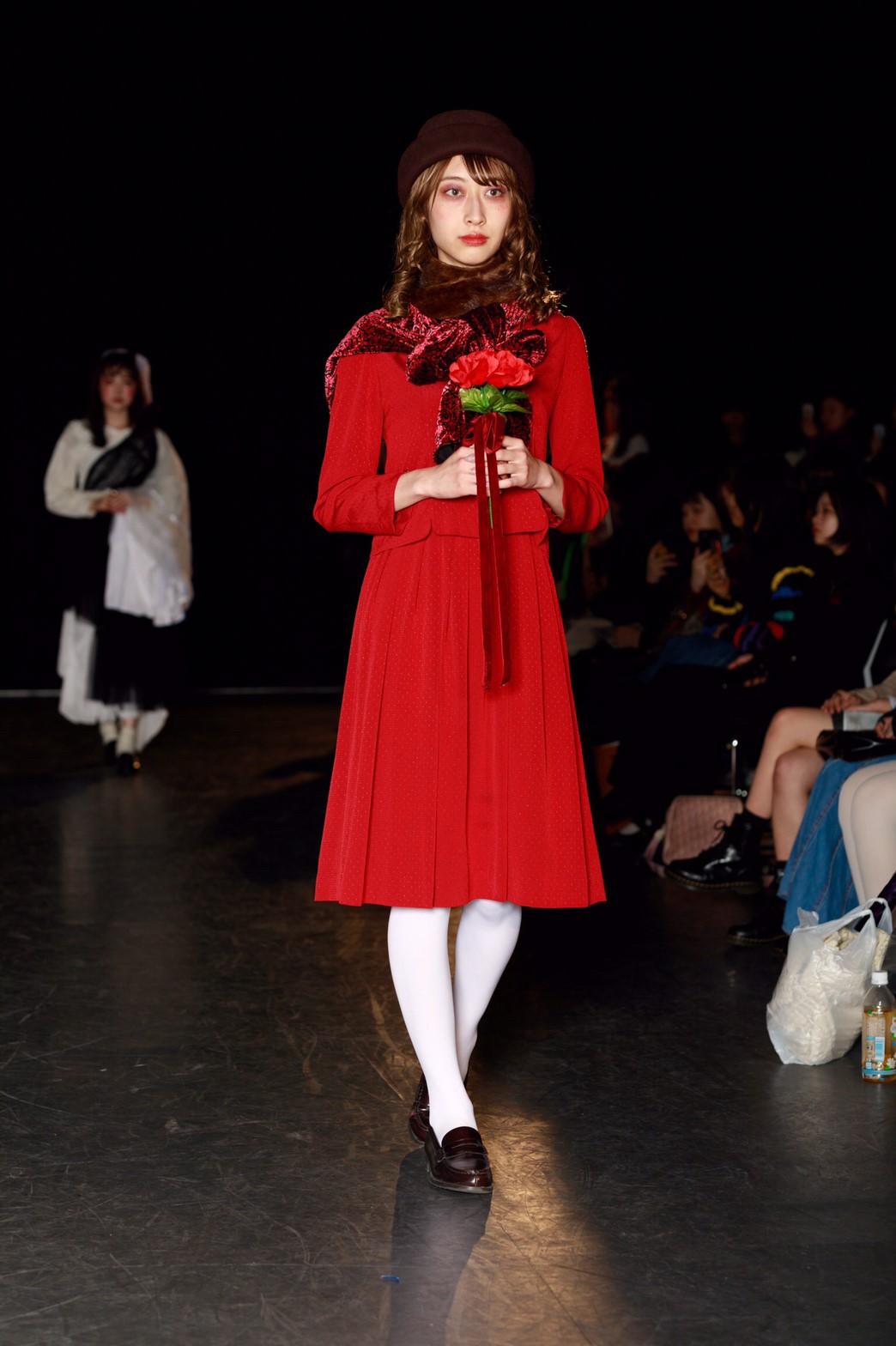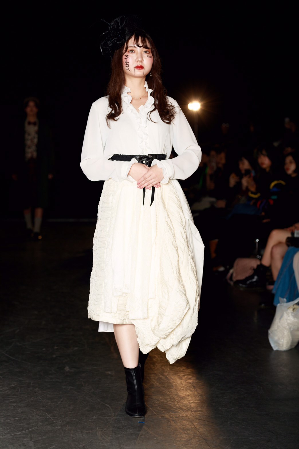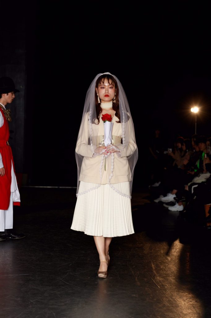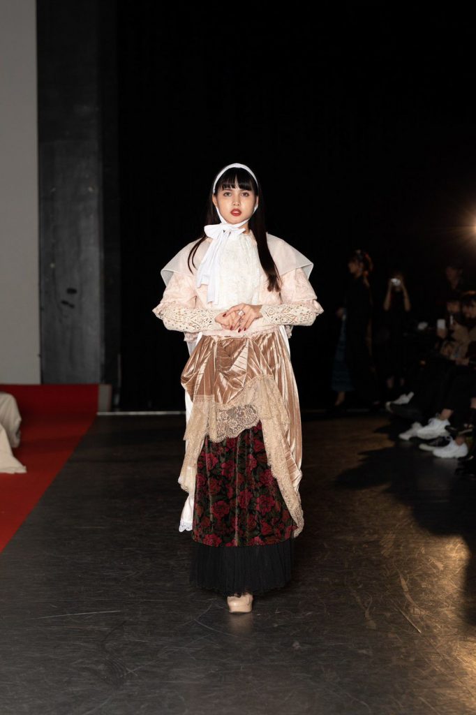 今回のテーマは「TOY?」。作り込まれたムービーから来場者の心を掴んだ。幕が上がると、メイクまで細かく作り込まれたモデルが歩き始める。歩き終えたモデルをインスタレーションとして残すという斬新な手法でのアプローチ。だんだんと完成していくインスタレーションはまるで古いヨーロッパのおもちゃ箱の中身のようであった。リースの古着だからこそ出るそのリアルな雰囲気とモデルがその世界観を伸長し、観客をその世界に引き込んでいた。