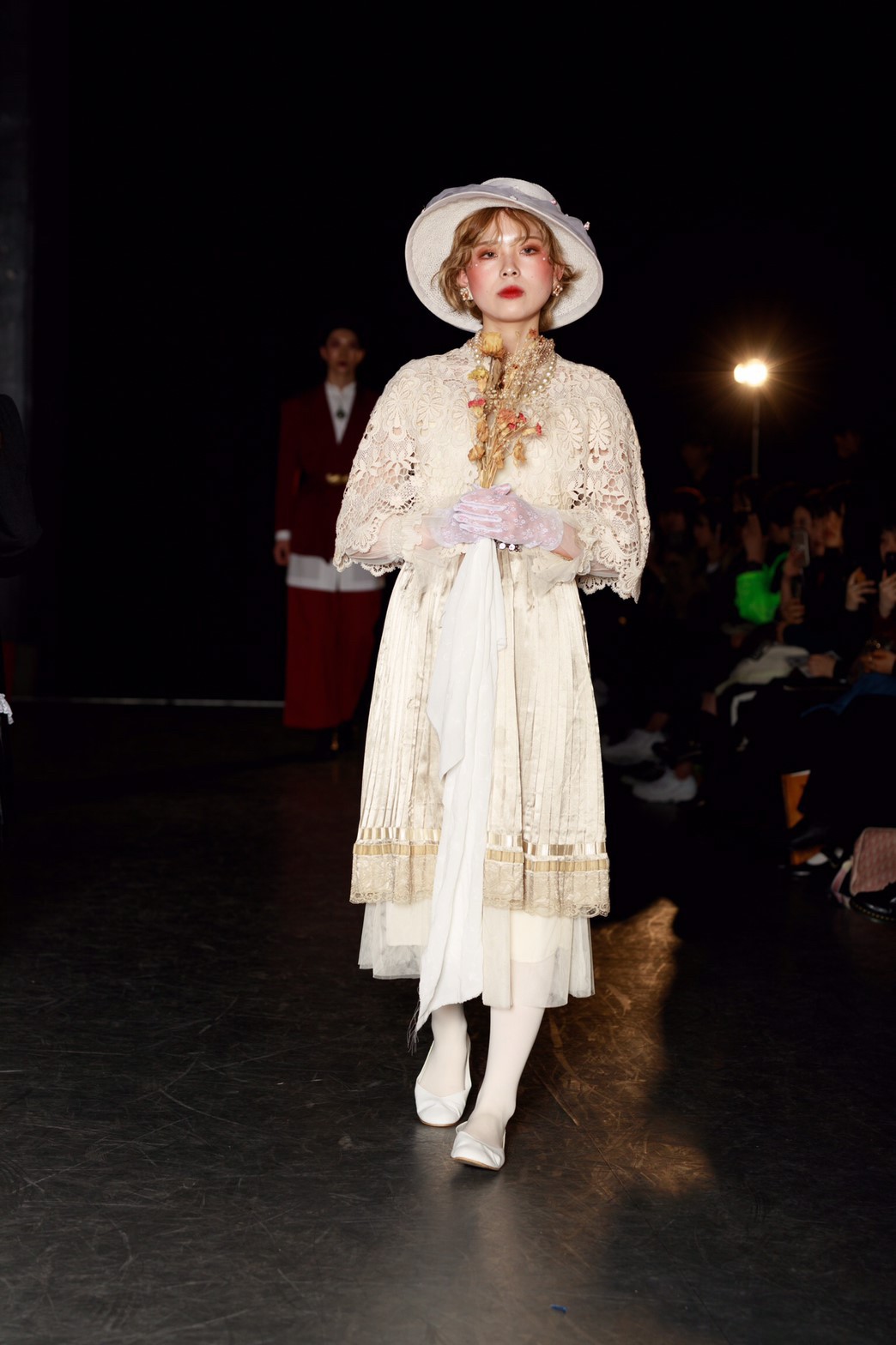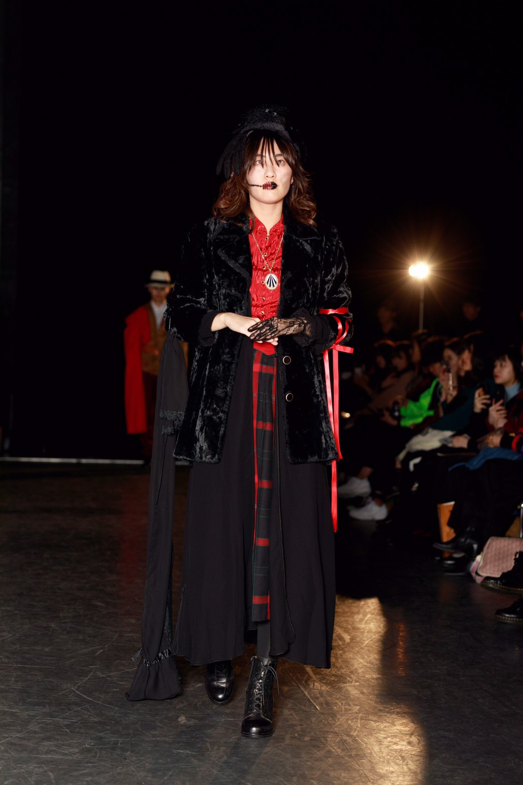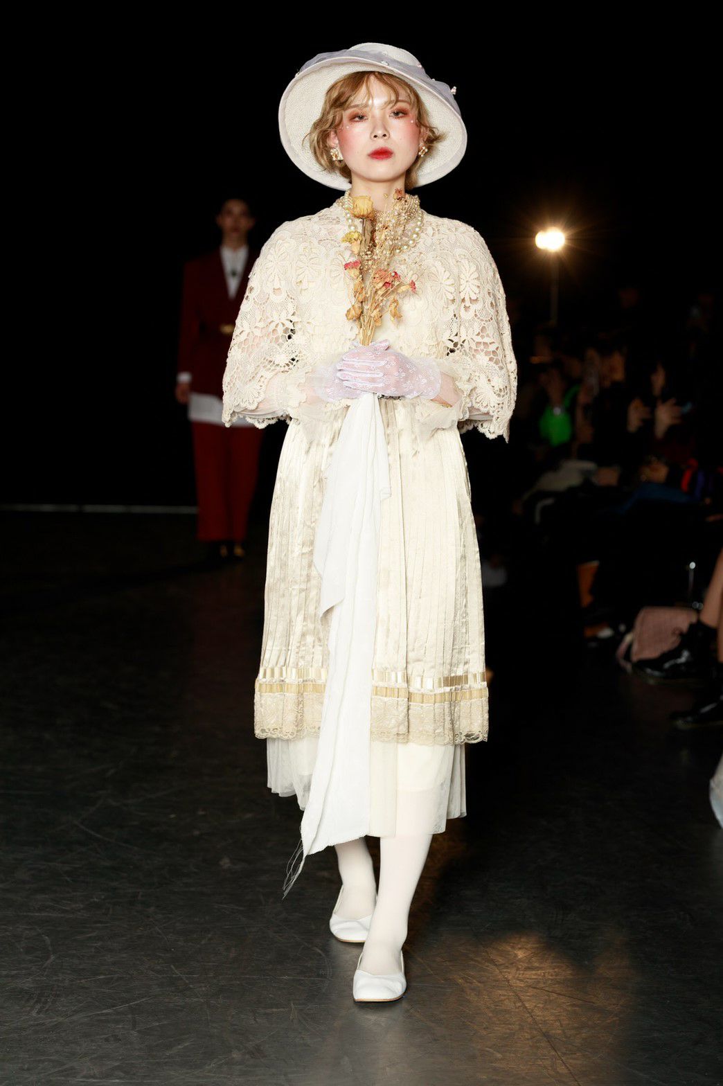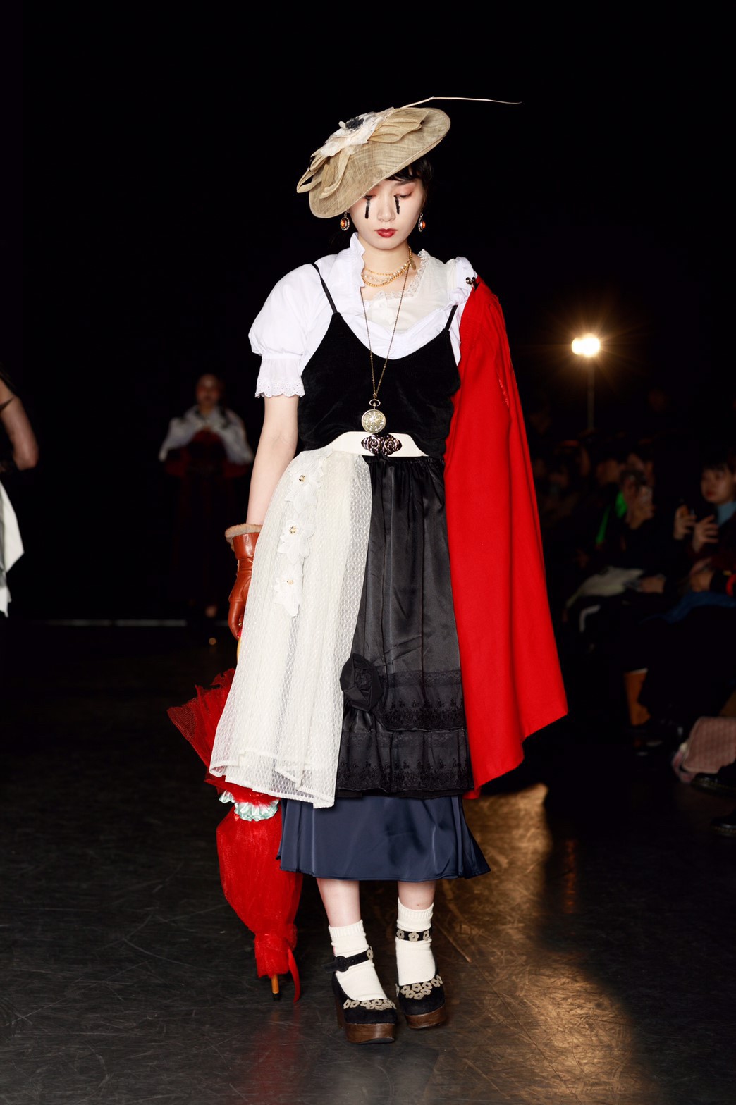 今回のテーマは「TOY?」。作り込まれたムービーから来場者の心を掴んだ。幕が上がると、メイクまで細かく作り込まれたモデルが歩き始める。歩き終えたモデルをインスタレーションとして残すという斬新な手法でのアプローチ。だんだんと完成していくインスタレーションはまるで古いヨーロッパのおもちゃ箱の中身のようであった。リースの古着だからこそ出るそのリアルな雰囲気とモデルがその世界観を伸長し、観客をその世界に引き込んでいた。