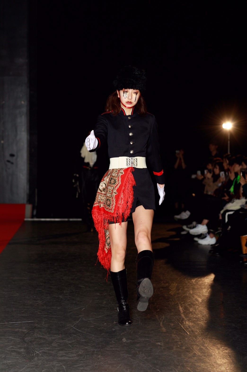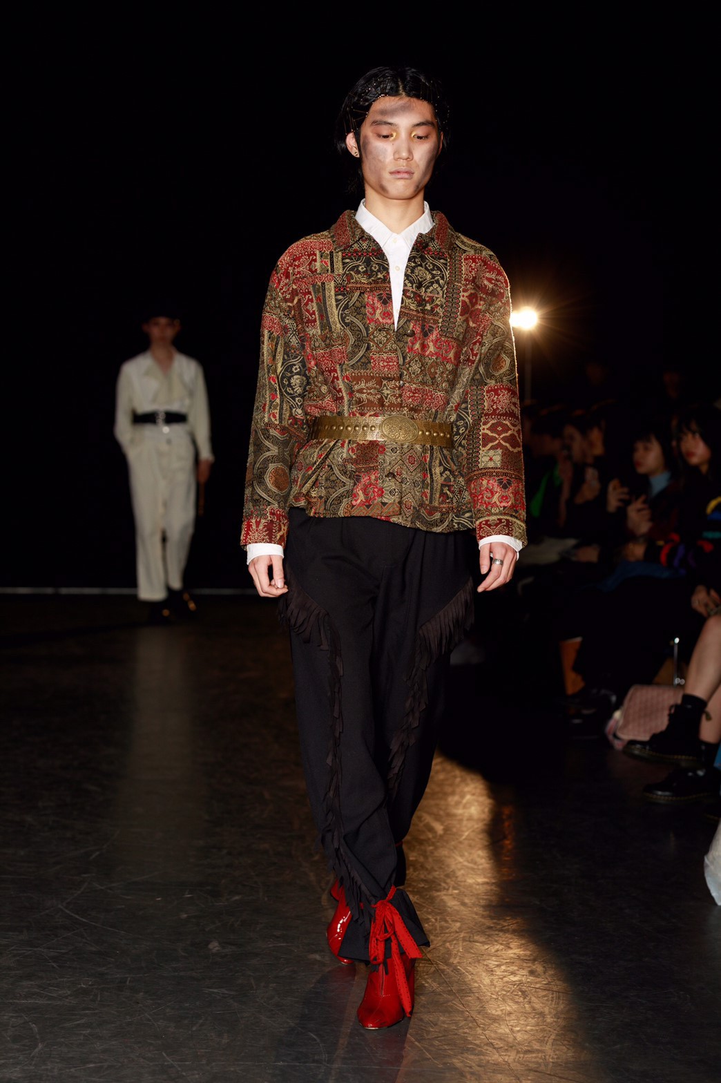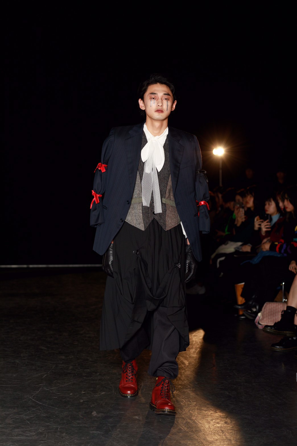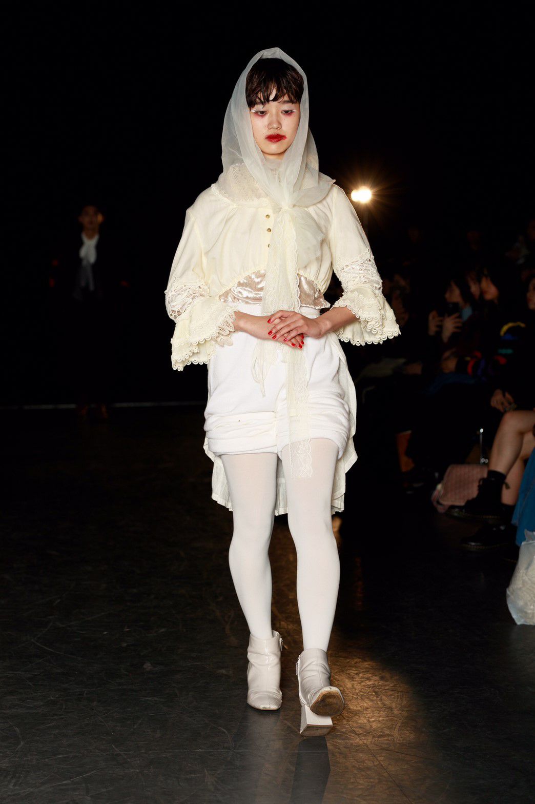 今回のテーマは「TOY?」。作り込まれたムービーから来場者の心を掴んだ。幕が上がると、メイクまで細かく作り込まれたモデルが歩き始める。歩き終えたモデルをインスタレーションとして残すという斬新な手法でのアプローチ。だんだんと完成していくインスタレーションはまるで古いヨーロッパのおもちゃ箱の中身のようであった。リースの古着だからこそ出るそのリアルな雰囲気とモデルがその世界観を伸長し、観客をその世界に引き込んでいた。